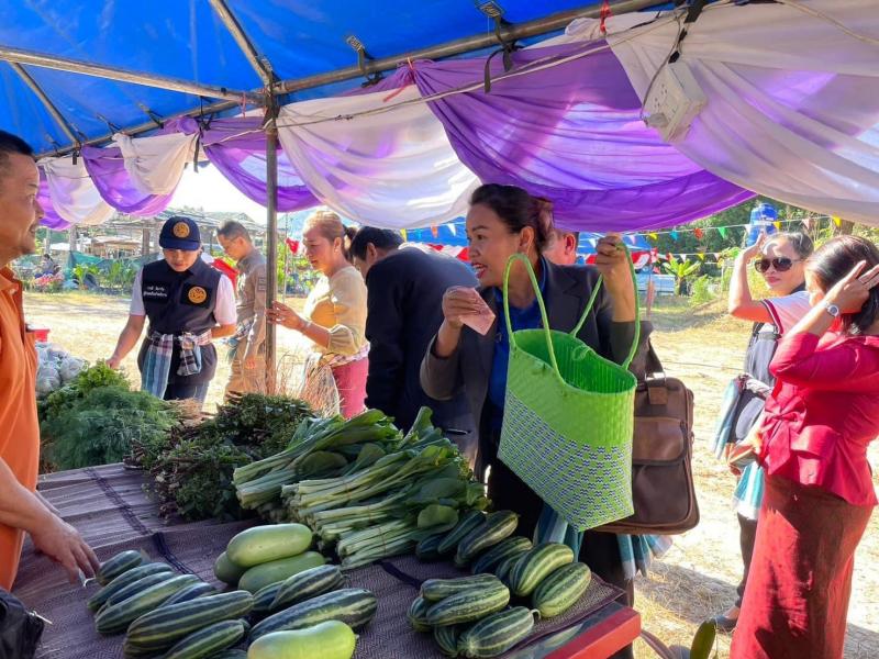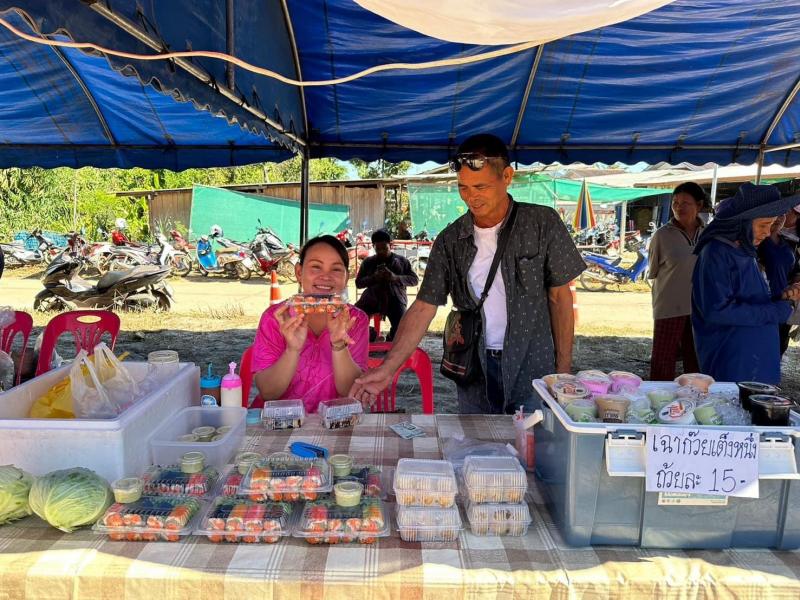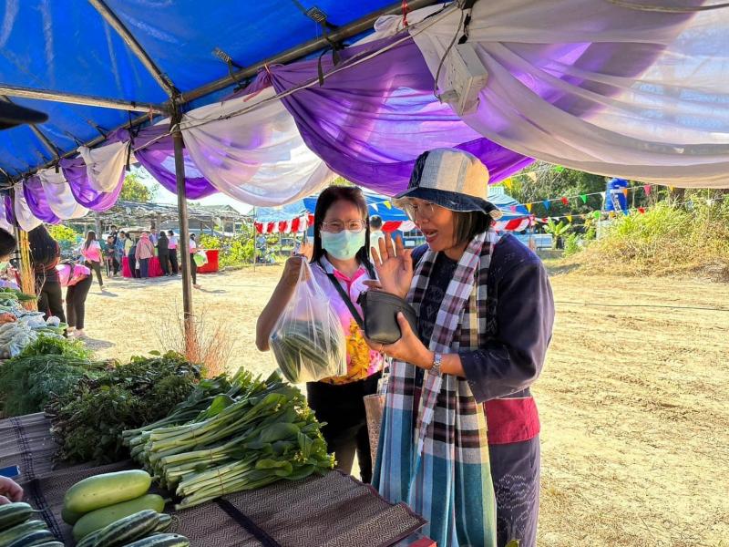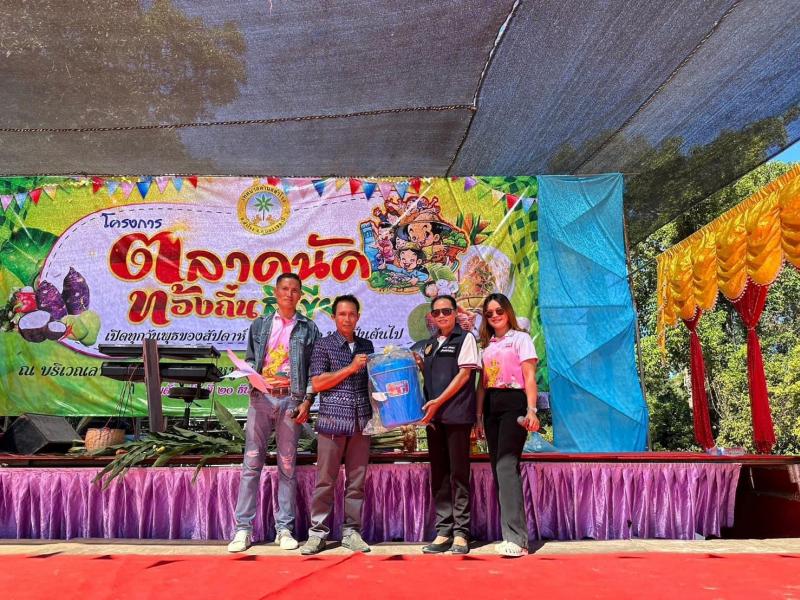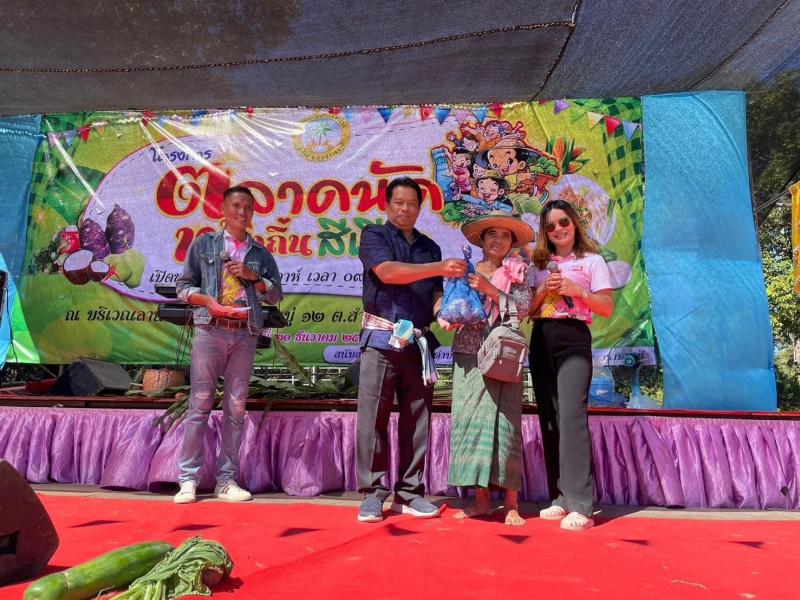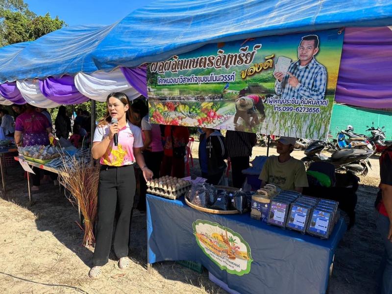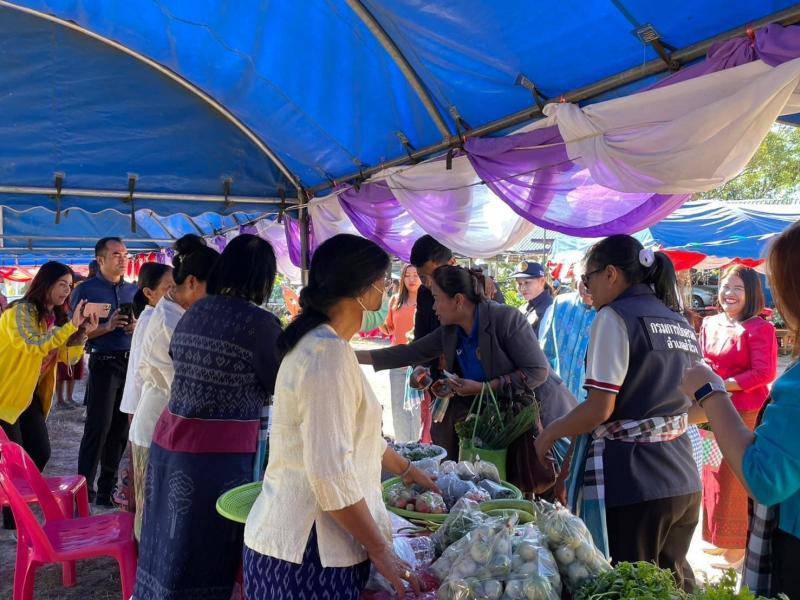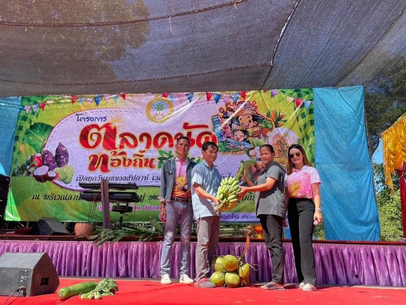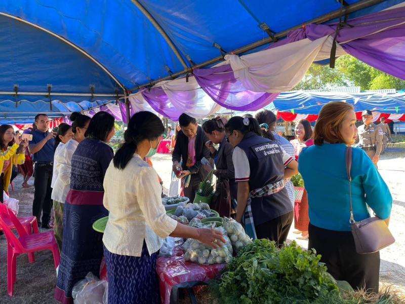 โดยมี นายสมศรี สิมาวัน นายกเทศมนตรีตำบลสำโรง เป็นผู้กล่าวรายงานวัตถุประสงค์โครงการ เพื่อเปิดโอกาสให้คนในชุมชนสามารถนำสินค้ามาจำหน่ายและแสวงหาช่องทางการพัฒนาผลิตภัณฑ์และเพิ่มโอกาสในการจัดจำหน่ายในครั้งนี้ เปิดโอกาสให้ประชาชนผู้ที่มีความสนใจที่จะนำสินค้าประเภท พืชผักสวนครัว ผลไม้ตามฤดูกาล สินค้าพื้นบ้านอื่นๆ จัดวางจำหน่าย