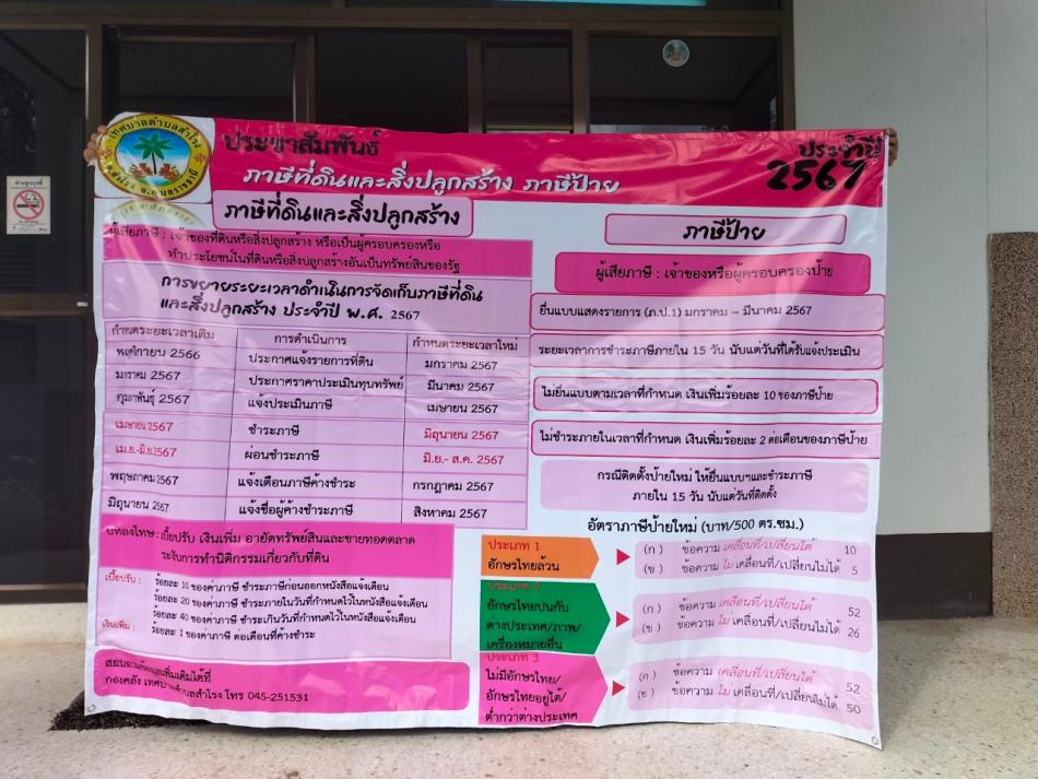 ประชาสัมพันธ์ ภาษีที่ดินและสิ่งปลูกสร้าง ภาษีป้าย ประจำปี 2567 [18 พฤศจิกายน 2566]