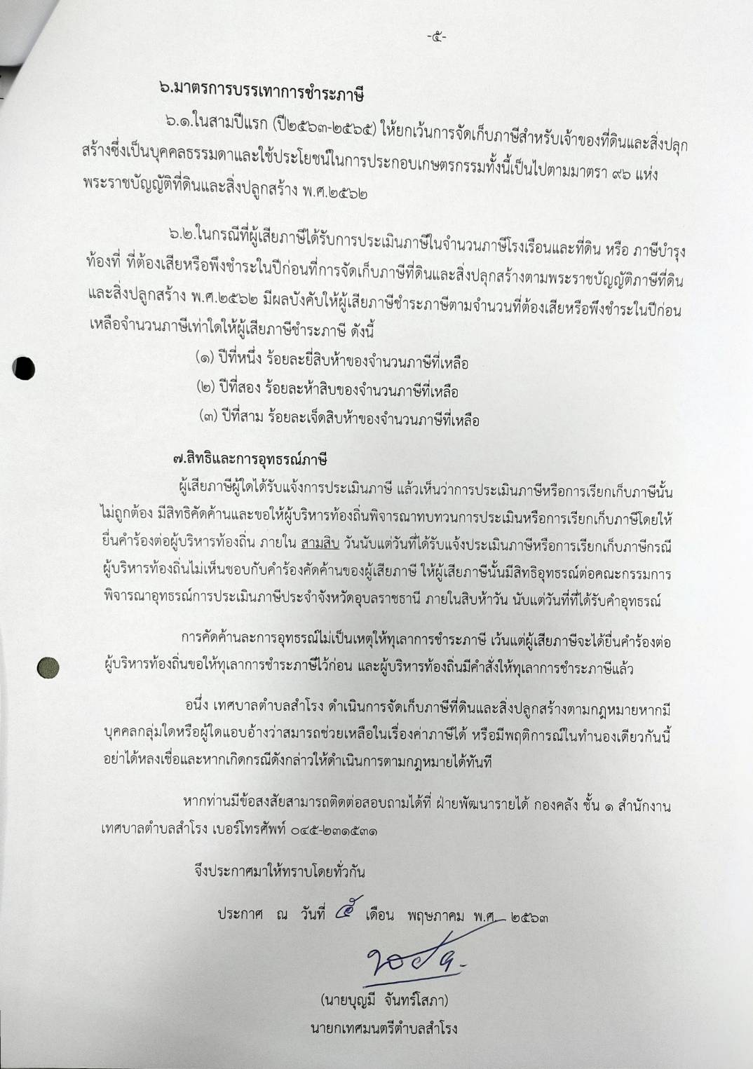 ประกาศบัญชีกำหนดราคาประเมินทุนทรัพย์ที่ดิน หรือสิ่งปลูกสร้าง (ของกรมธนารักษ์) ของเทศบาลตำบลสำโรง
