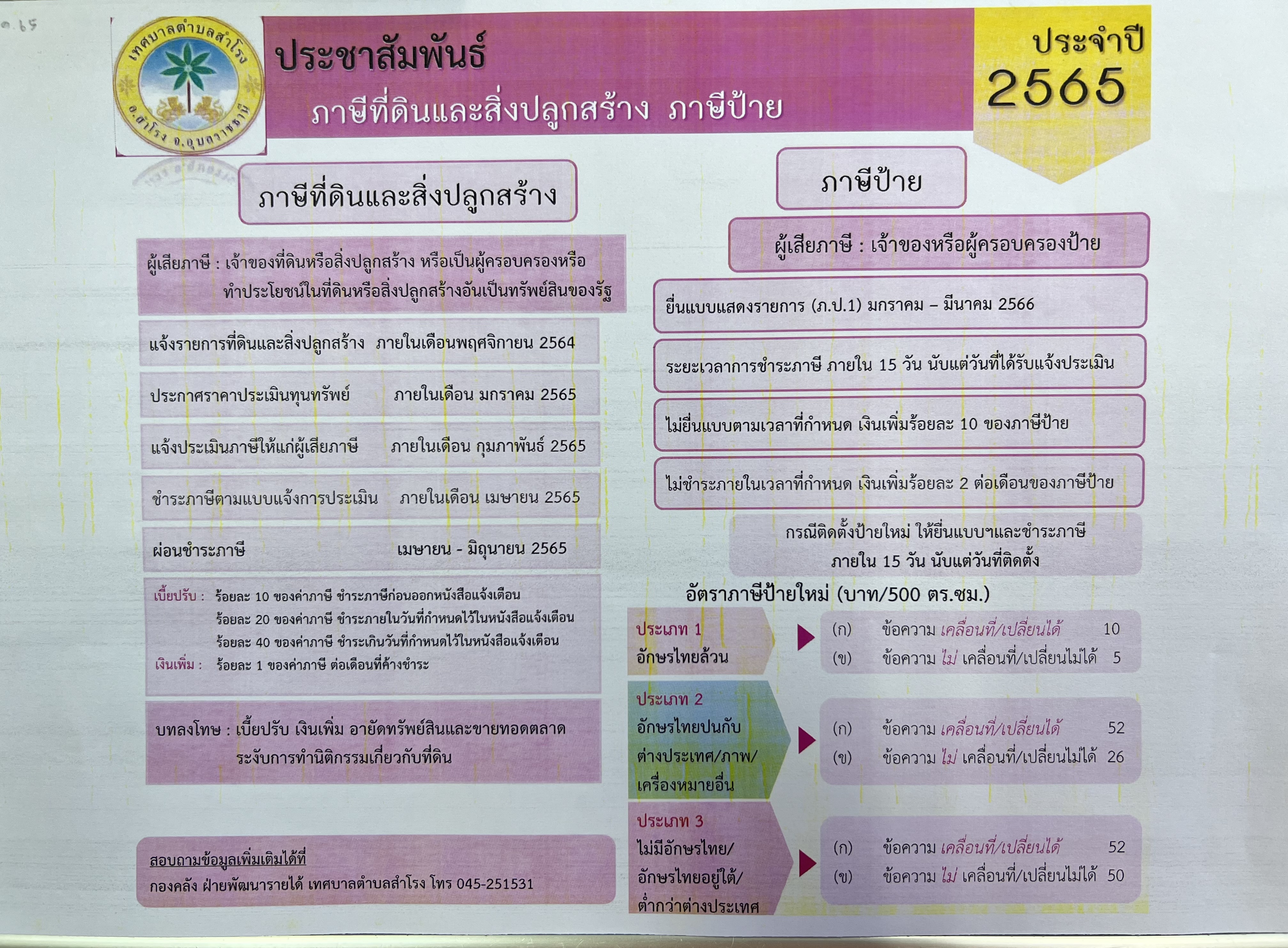ประชาสัมพันธ์ภาษีที่ดินและสิ่งปลูกสร้าง ภาษีป้าย ประจำปี 2565