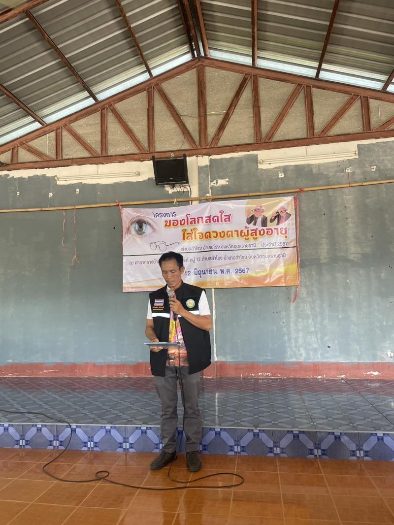 description 12 มิถุนายน 2567 เวลา 09.00 น.นายระพิน แก้วคำชาติ รองนายกเทศมนตรี ได้รับมอบหมายจาก นายสมศรี สิมาวัน นายกเทศมนตรีตำบลสำโรง เป็นประธานเปิดโครงการมองโลกสดใสใส่ใจดวงตาผู้สูงอายุ ณ ศาลากลางบ้านโนนสวรรค์ person admin