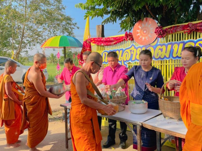 วันที่ 18 ตุลาคม 2565 นายสมศรี สิมาวัน นายกเทศมนตรีเทศบาลตำบลสำโรง พร้อมสมาชิกสภาเทศบาล กำนัน ผู้ใหญ่บ้าน ข้าราชการ ลูกจ้าง เทศบาลตำบลสำโรง และประชาชนตำบลสำโรง ร่วมทำบุญตักบาตร ‘’ถนนสายวัฒนธรรม ‘’ ข้าวสาร อาหารแห้ง ณ วัดบ้านโนนสวน หมู่ 3 ตำบลสำโรง อำเภอสำโรง จังหวัดอุบลราชธานี