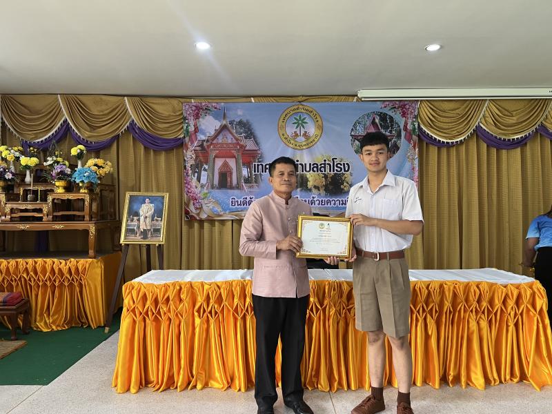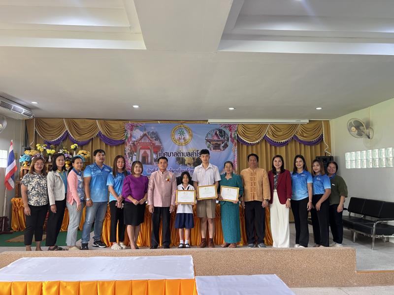เทศบาลตำบลสำโรง อำเภอสำโรง จังหวัดอุบลราชธานี ---------------------------------------------- วันที่ 21 มีนาคม 2568 งานสาธารณสุขและสิ่งแวดล้อม เทศบาลตำบลสำโรง ประกาศผลการคัดเลือกอาสาสมัครท้องถิ่นรักษ์โลกต้นแบบ และจัดพิธีมอบประกาศนียบัตร เพื่อประกาศยกย่องเชิดชูเกียรติ โดยมี นายสมศรี สิมาวัน นายกเทศมนตรีตำบลสำโรง เป็นประธานในการมอบเกียรติบัตร จำนวน 3 ประเภท ประกอบด้วย ประเภทหนูน้อย อถล. ประเภทเยาวชน อถล. และประเภทบุคคลทั่วไป